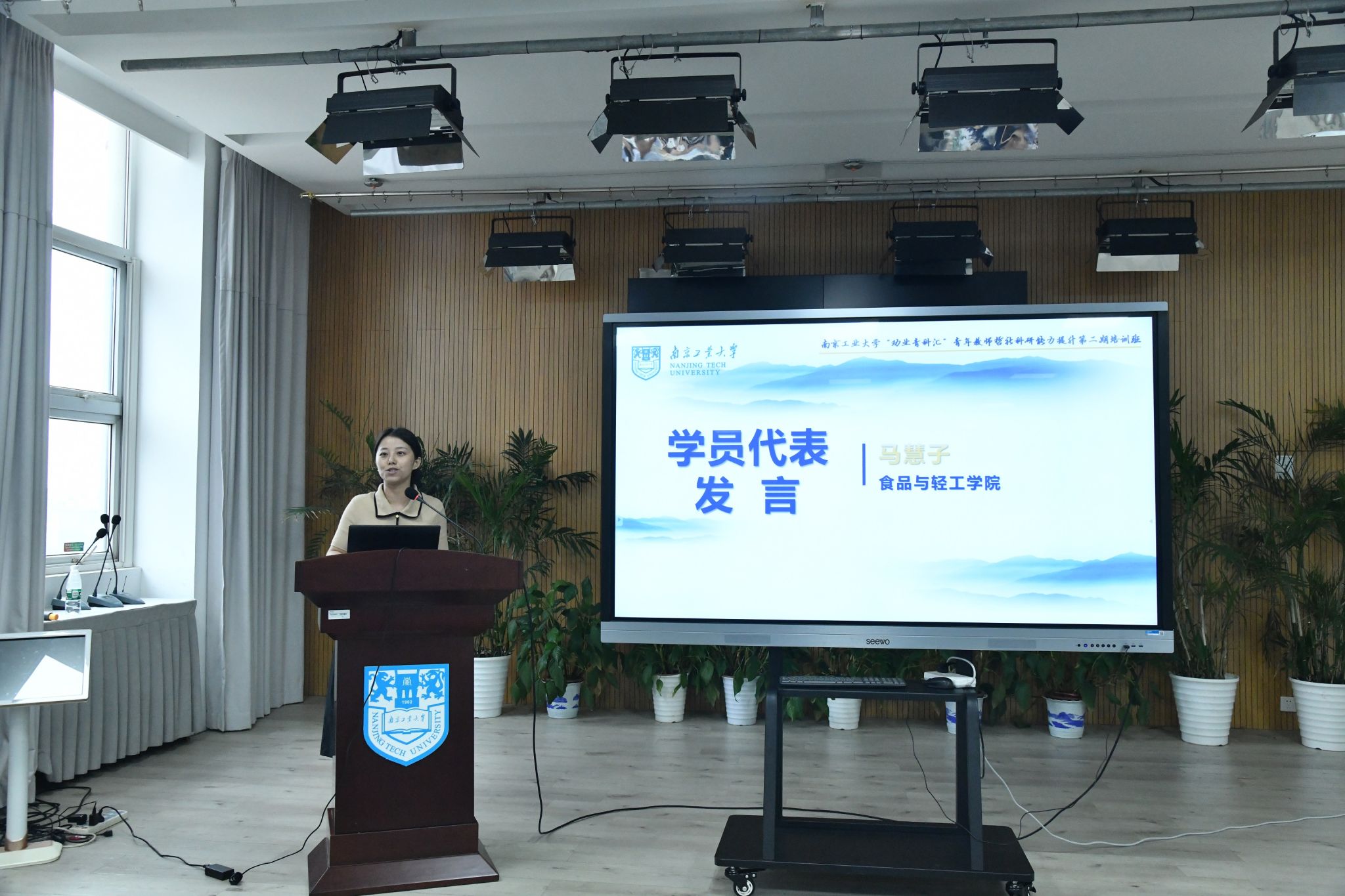 在结业仪式上,刘大卫副校长讲话,他希望我校哲社青年教师专心致志、沉下身子、坚定自信,在奋斗中突破自我,直面经济社会发展的真问题,积极投身建设中国特色哲社事业。许益军副主席和刘大卫副校长为学员代表颁发结业证书。法政学院孙也龙、食品与轻工学院马慧子作为学员代表分享培训心得。