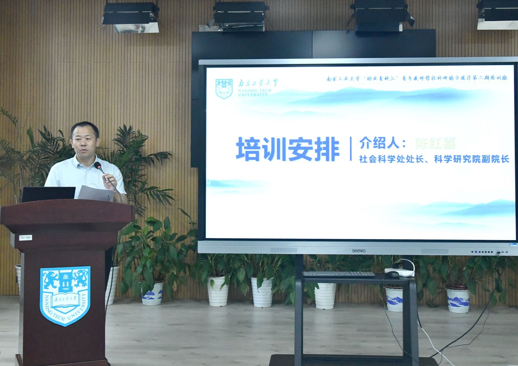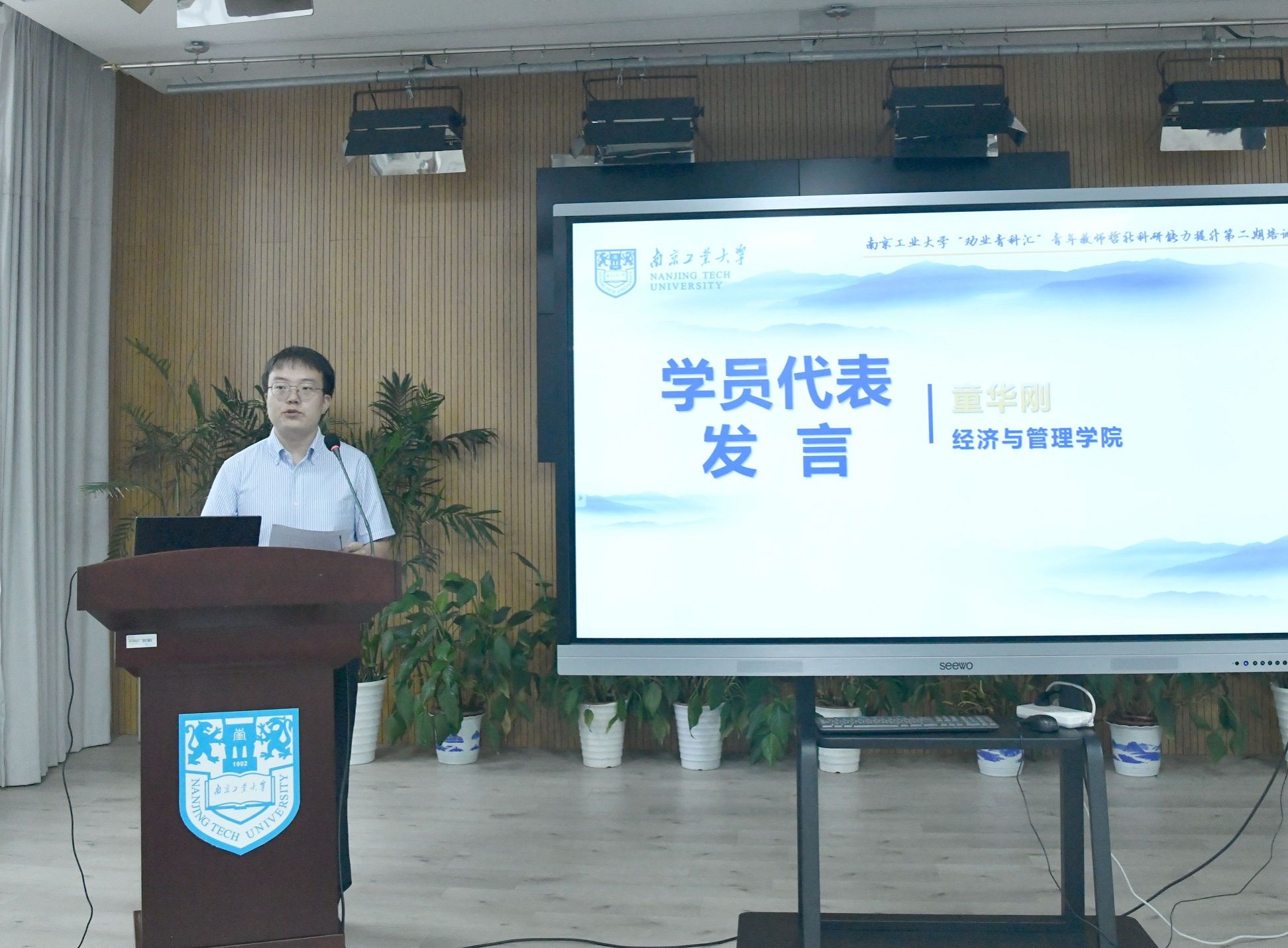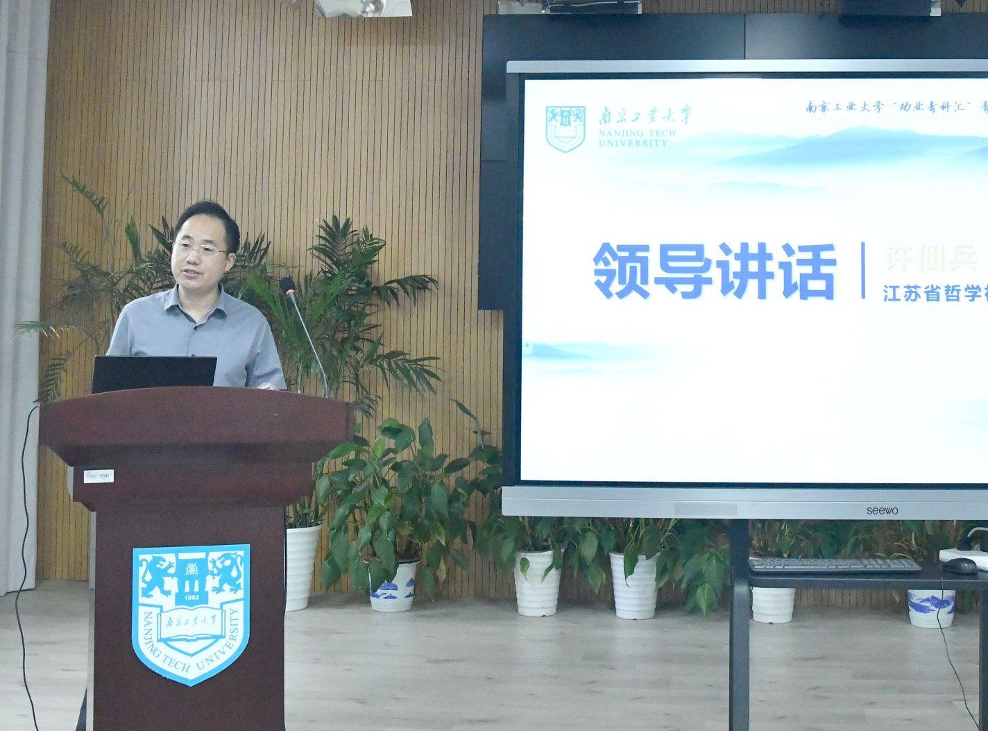 许佃兵主任在讲话中指出,南京工业大学哲学社会科学工作近几年发展势头稳健、特色鲜明、成绩显著,勉励我校青年教师要珍惜这大有可为的光荣时代,培养胸怀“国之大者”的学术情怀。蒋军成校长介绍了我校“十四五”以来在理论研究、资政建言、平台建设方面取得的成果,寄语我校青年教师要坚持明德治学,开展高水平研究;坚持落实立德树人,引导大学生成长;坚持扎根江苏大地,服务高质量发展。社会科学处处长陈红喜从举办培训班的意义、如何开展培训、对学员的期待介绍培训安排。经济与管理学院童华刚老师作为学员代表发言。