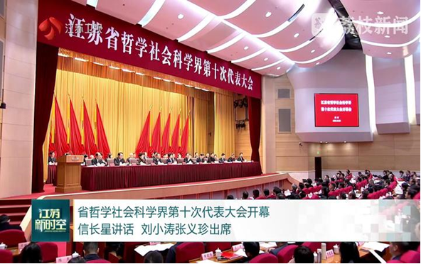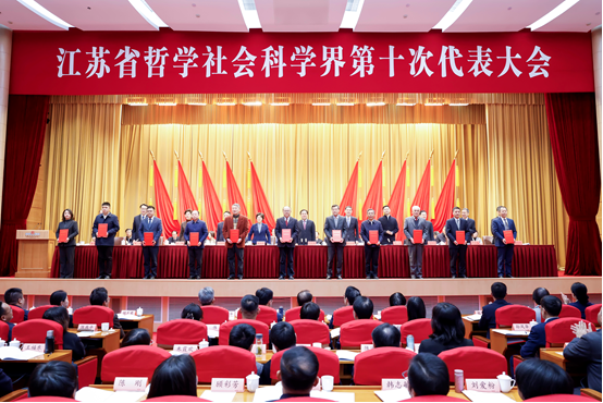 12月26日至27日,江苏省哲学社会科学界第十次代表大会在南京召开,省委书记、省人大常委会主任信长星,全国哲学社会科学工作办公室主任胡滨出席开幕会并讲话。省长刘小涛、省政协主席张义珍出席。大会根据《章程》和选举办法,选举产生了由335人组成的江苏省社科联第十届理事会,省委常委、省委宣传部部长徐缨当选理事会主席,我校党委书记荆晅等67人当选常务理事。会上为省第十八届哲学社会科学优秀成果奖获奖代表颁发证书,我校陈红喜教授作为省哲学社会科学优秀成果奖一等奖获奖代表上台领奖。