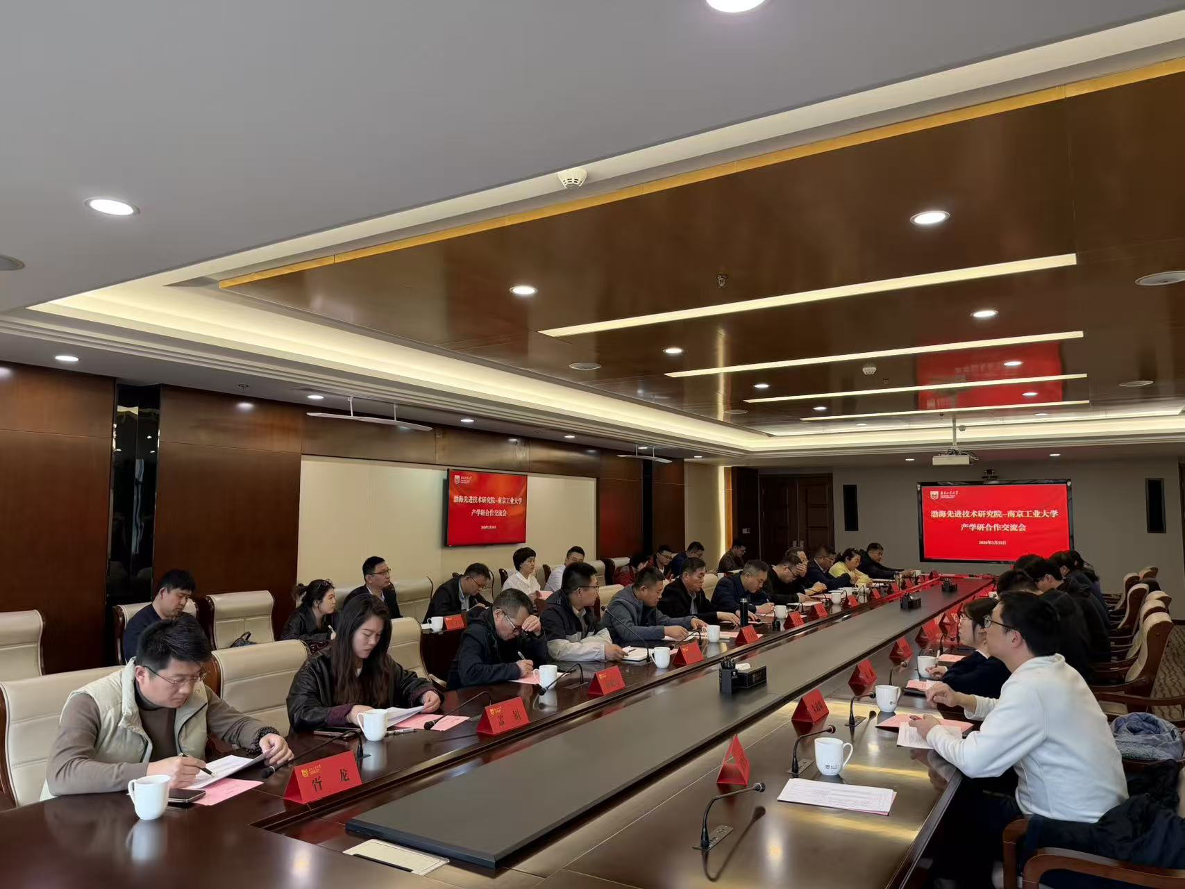 3月31日下午,渤海先进技术研究院与南京工业大学产学研合作交流会在弘毅楼三楼会议室举行。科学研究院自然科学处副处长金俊阳主持会议。